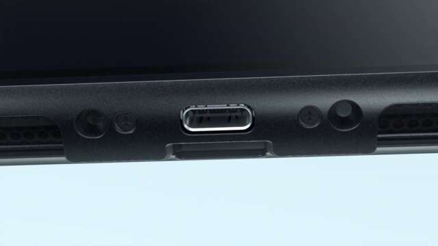 One of the big quality-of-life changes to the Switch design we’ve spotted is that it’ll have two USB-C ports. There’s one mounted at the top of the console and another at the bottom, and the benefit to this is that it’ll make it easier to charge the device in handheld mode and play on it at the same time.