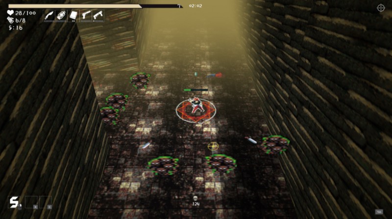 Pixelated bullet hell chaos: combine weapons and automatically fire as you wade through unrelenting waves of enemies (best keep moving though or you might go splat).