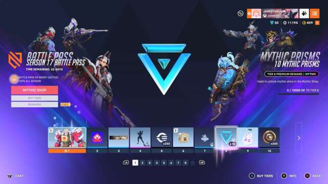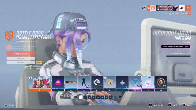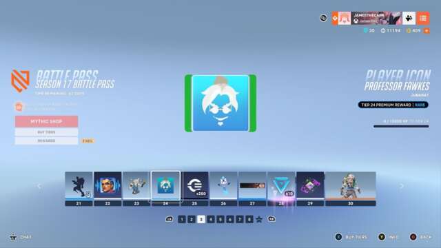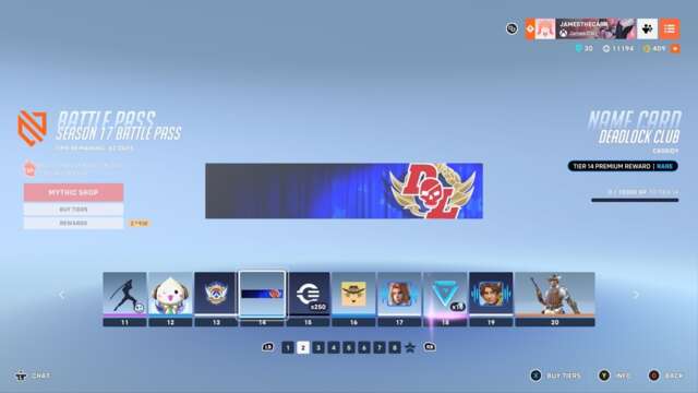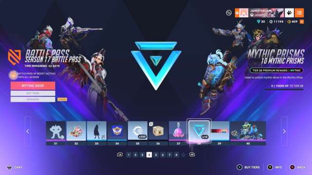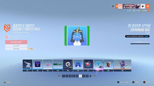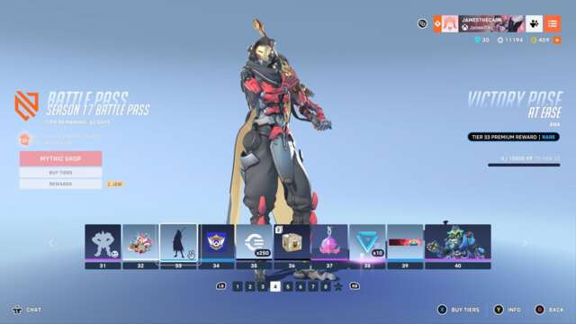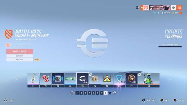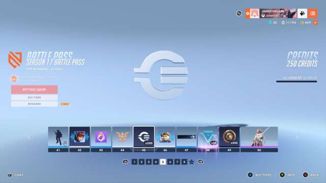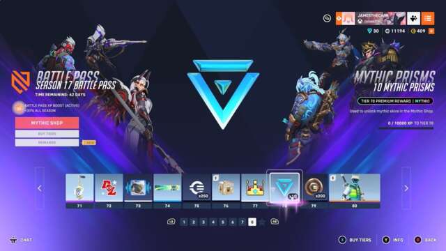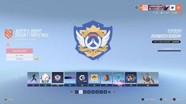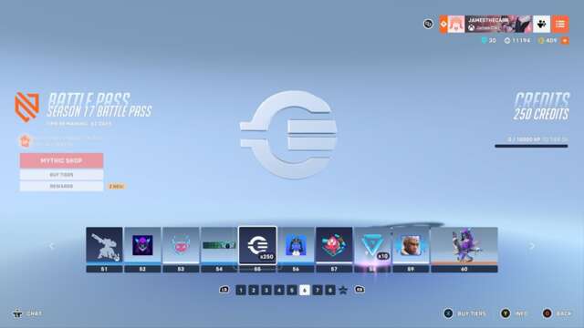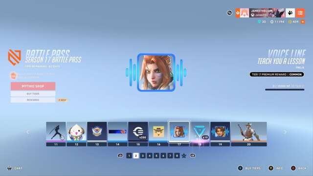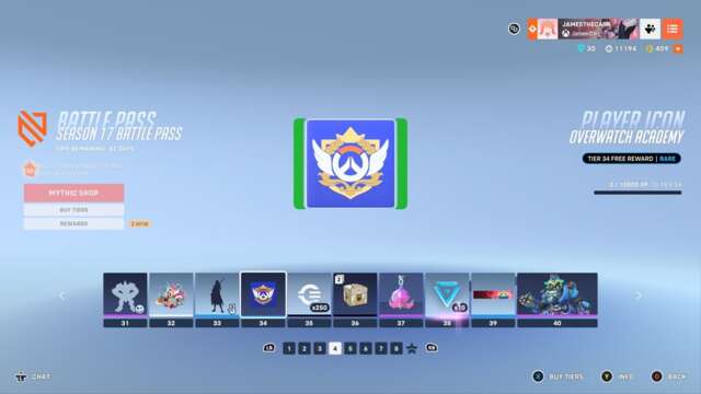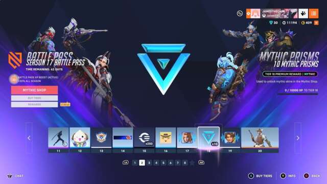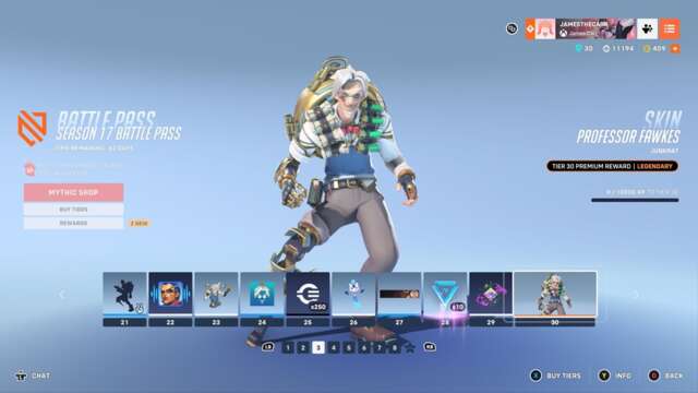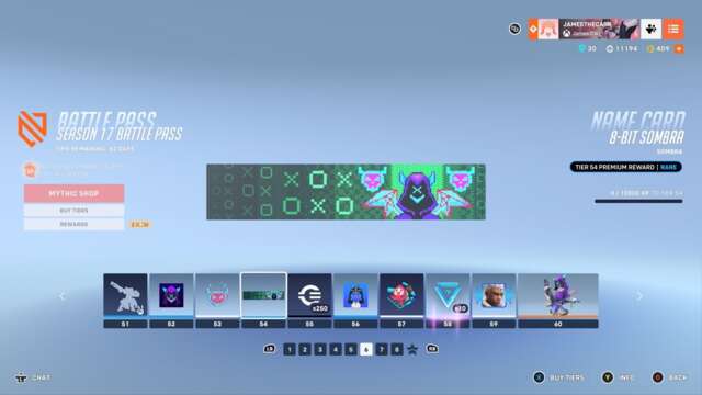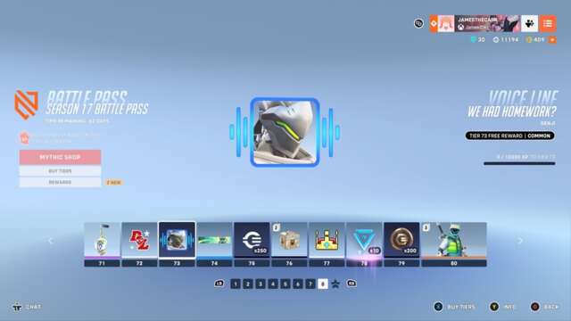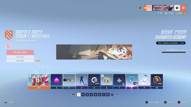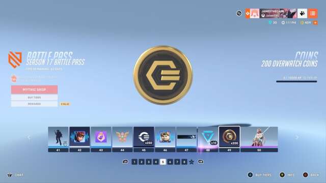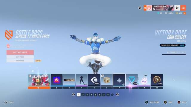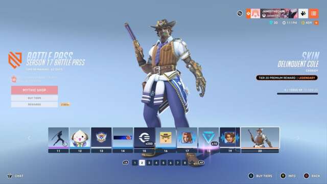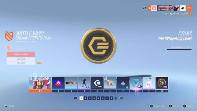 The battle pass costs 1,000 Overwatch Coins (about $10), but there is also a battle pass bundle, which costs $40. That includes the premium battle pass, which has 80 tiers of rewards, 20 tier skips, 2,000 Overwatch Coins, and two exclusive legendary skins, Principle Lacroix Widowmaker and Professor de Kuiper Sigma.