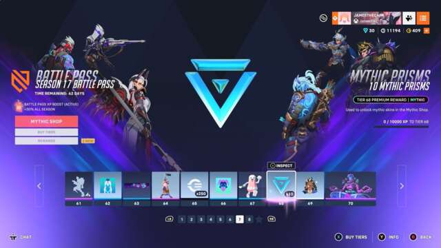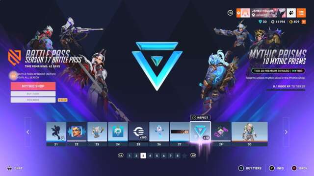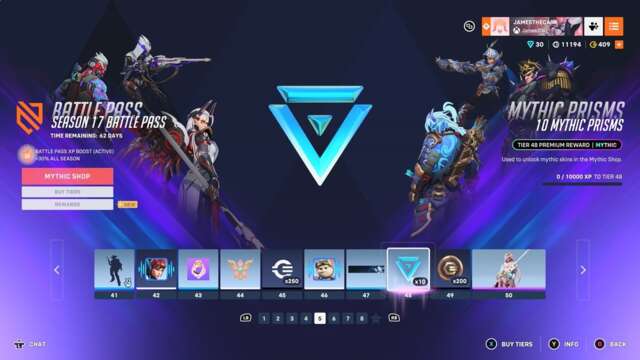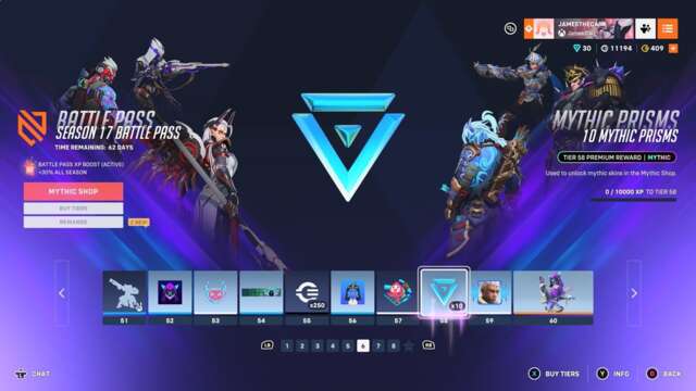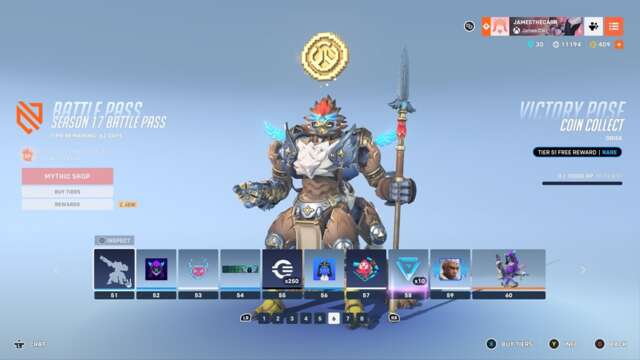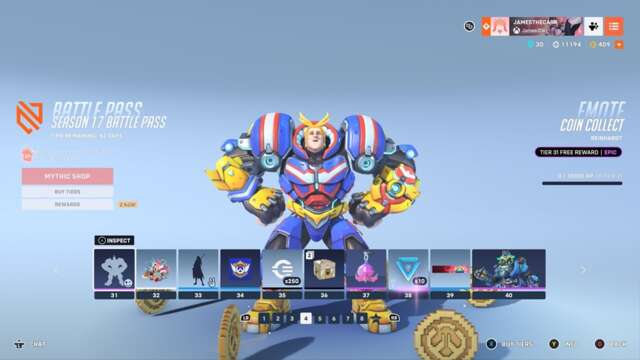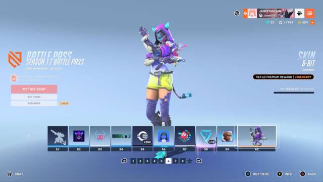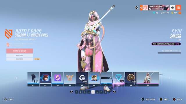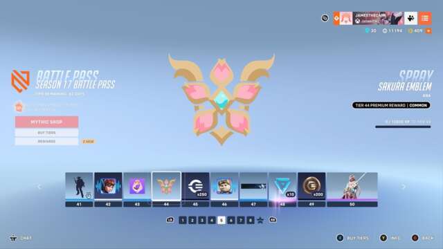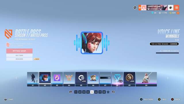 The new season also means new Mythic skins, D.Va’s Mythic Horang Hero Skin and Reaper’s Mythic Steel Death Weapon Skin. Both of these have been added to the Mythic shop, with the basic version costing 40 Mythic Prisms and all variants costing an additional 40 Mythic Prisms. Mythic Prisms can be obtained via the premium battle pass or purchased directly with real money. Outside of cosmetics, Season 17 adds map voting to competitive Overwatch, giving you even more control over your ranked matches after the previous season added hero bans. Stadium mode has received two new maps, and added three more heroes to the hero pool, Sigma, Junkrat, and Zenyatta. Below you can see every item in the Overwatch 2 Season 17 battle pass.