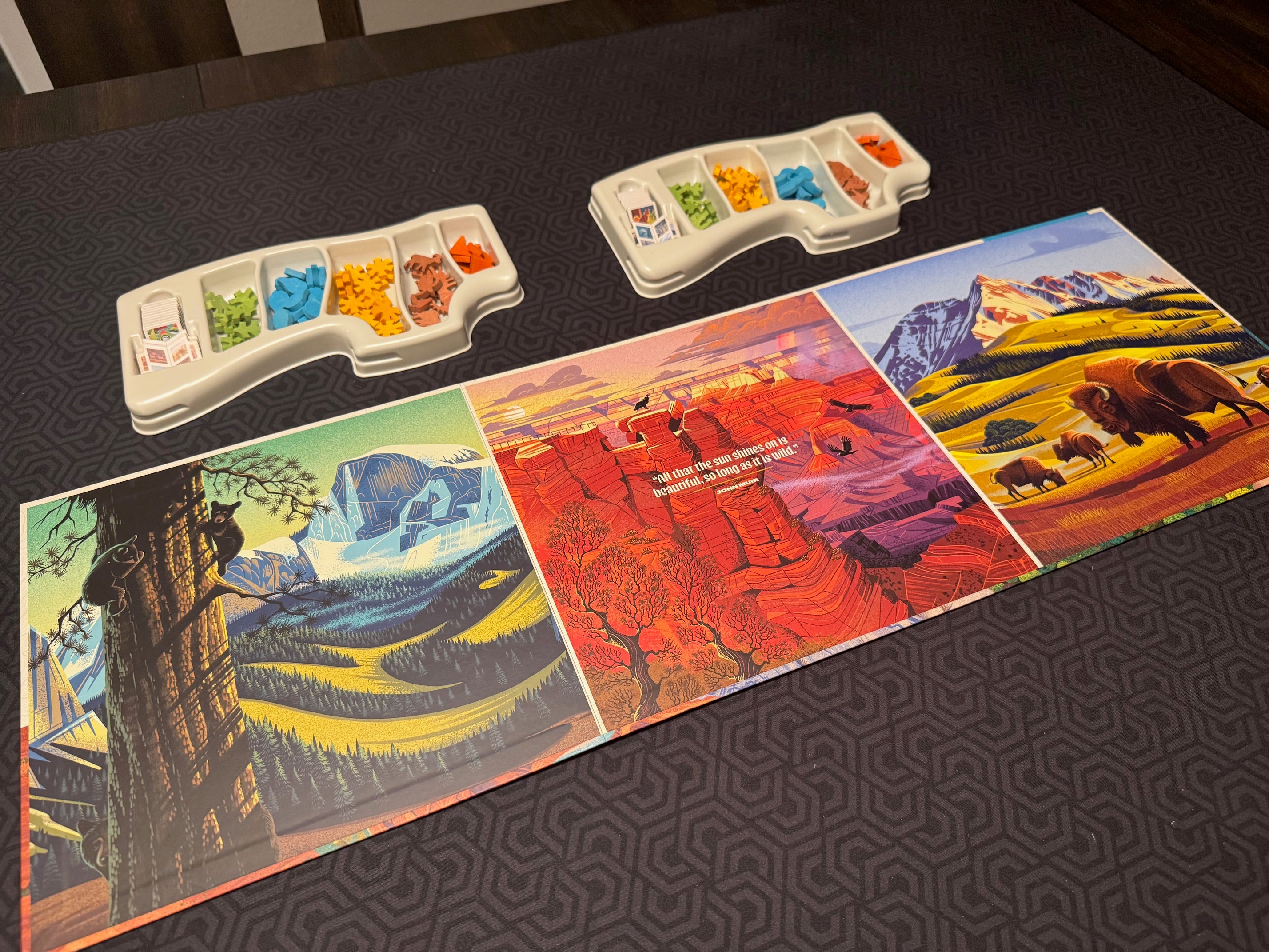 Gameplay in the second edition of Parks is a streamlined take on the original, incorporating elements from both expansions. The goal is simple: score the most points by hiking the trail, visiting parks, snapping photos, and completing optional objectives.