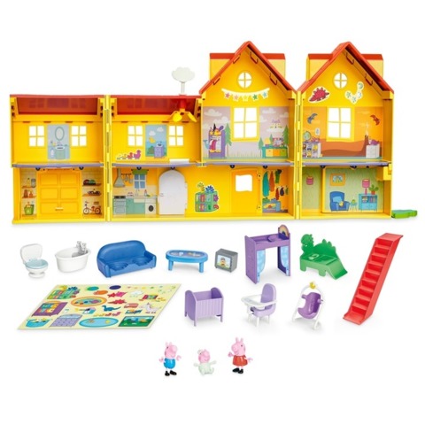 This massive playset features 16 different pieces and spans 7 distinct rooms. Tiny Peppa, George, and Evie figures are included, and you’ll find a sticker sheet giving you additional ways to customize the home. All the accessories fit inside the home, too, so you can neatly store everything when not in use.