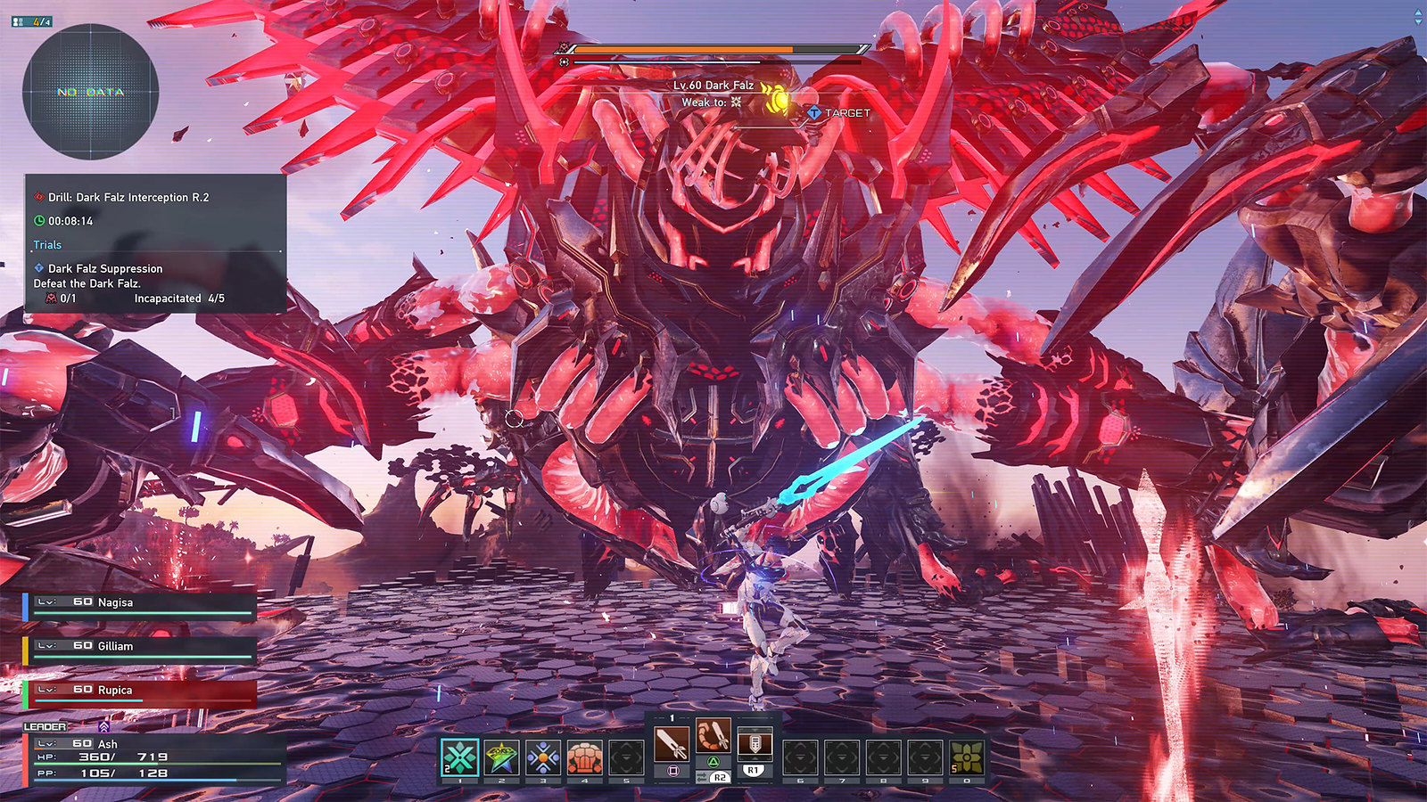Though there are quests available from NPCs in the three main cities, a lot of the experience players earn in NGS comes from dynamic interactions that occur in the field. Emergency Trials spawn frequently, and these can necessitate defense of downed aircraft against enemy hordes, the destruction of a strong enemy alongside other players, or other scenarios. Storms may pummel the landscape and cause especially strong enemies, known as Gigantix, to appear. You’ll need help from quite a few players to dispatch them. Rewards from defeating enemies can be in-game currency, experience, weapons and armor (some high-powered or otherwise rare), and augments to enhance your gear. Some enemies in certain venues may even drop cosmetic items to further customize your character.