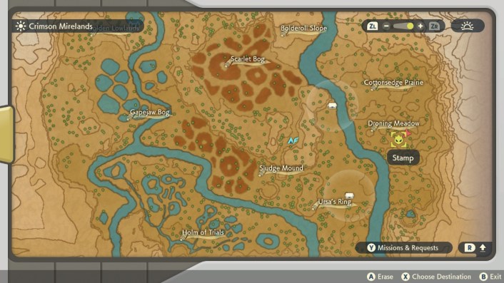 It is important to note that the Yanmega that can be encountered in Droning Meadow in the Crimson Mirelands is an Alpha Pokemon. The Alpha Yanmega that can be found here is a Level 58 Pokemon and can be found here at all times of the day and in every weather condition.