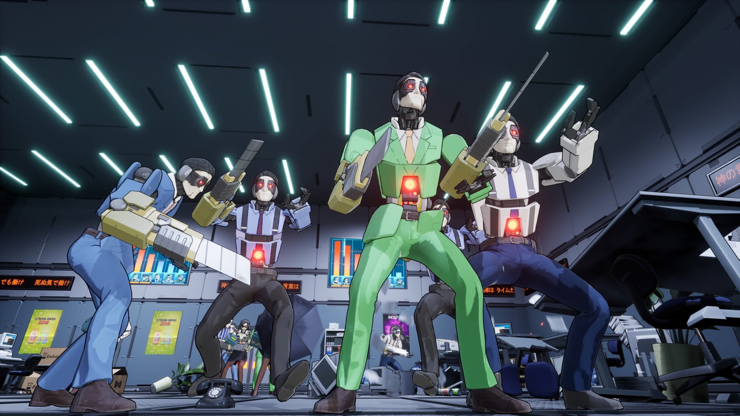 The battle takes place in a 100-story skyscraper. Standing in your way are the working dead, corporate slaves who have been turned into cyborgs and forced to continue working even after their death.