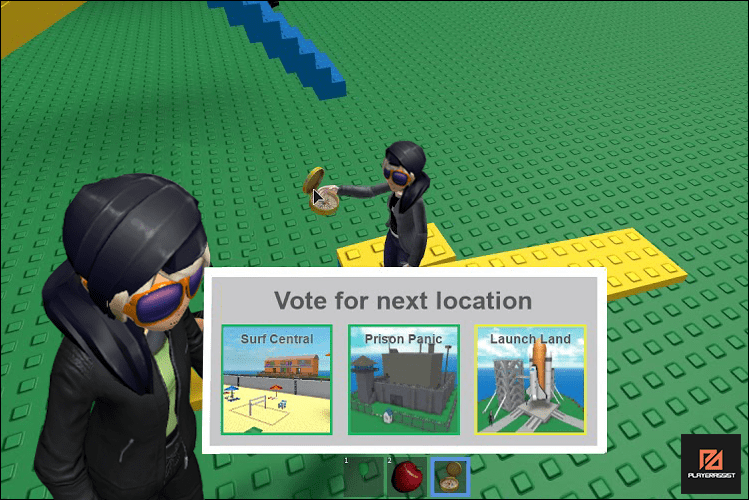 Yellow Compass – The third and final tool in the game is the compass, which may either be purchased with a gamepass or won via a Mysterious Golden Gift. Players can only choose one of the three maps the system presents using the compass. The map with the most votes will be chosen as the following map. In the event of a tie, the algorithm will randomly choose one of the maps with the most votes. One particular map can be doubled or tripled. The player has no control over what map will be played next if the original map is tripled.