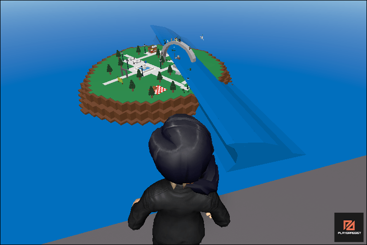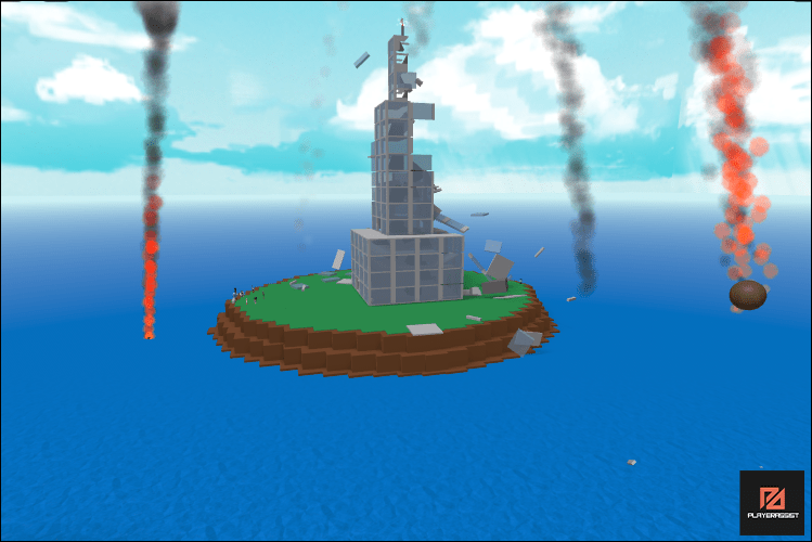 Players will be greeted by a GUI and placed on a tower when they start the game. While they wait for the next round from the spawn tower, they may watch the catastrophe that is befalling the island safely from a distance.