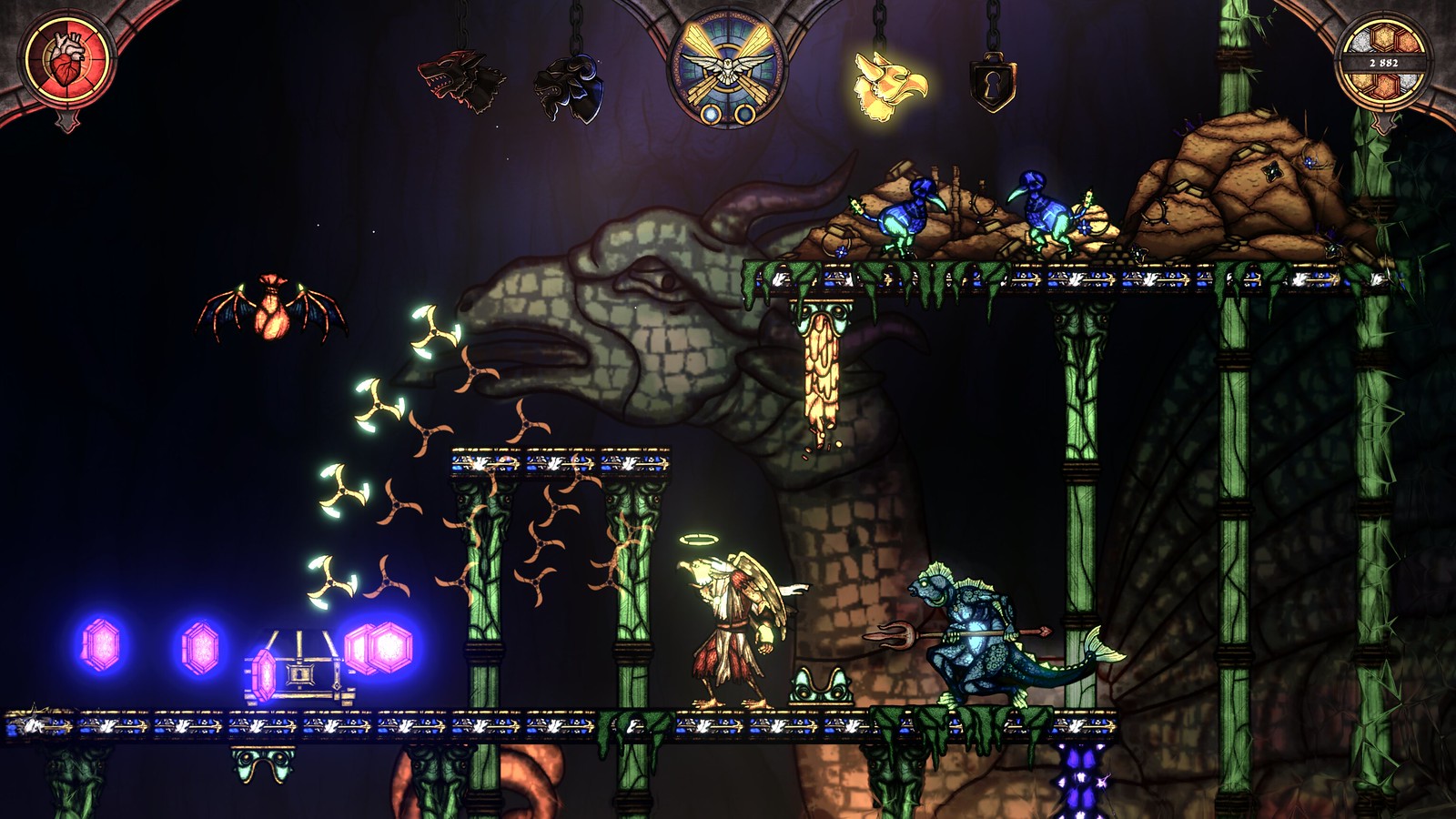 The Griffin’s weapon is a spread shot that can be upgraded – just like the flame breath of the Gargoyle or the Werewolf’s triple shot – by donating gold to Madonna statues that can be found around Sinwell, the game’s HUB area so to say.