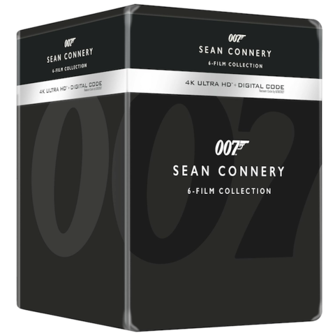 The steelbook collection includes six steelbooks–one for each film–plus the large steelbook library case shown above to store each film and a certificate of authenticity. The cases feature stills of Sean Connery from the movies. You’ll get 4K and digital versions of all six films.