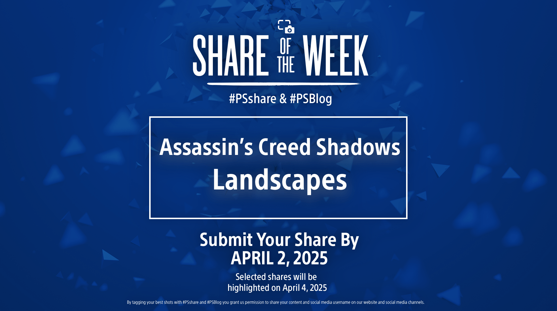 Next week, we’re focusing on the beautiful environments of Assassin’s Creed Shadows. Share landscapes across the seasons of Japan using #PSshare #PSBlog for a chance to be featured.