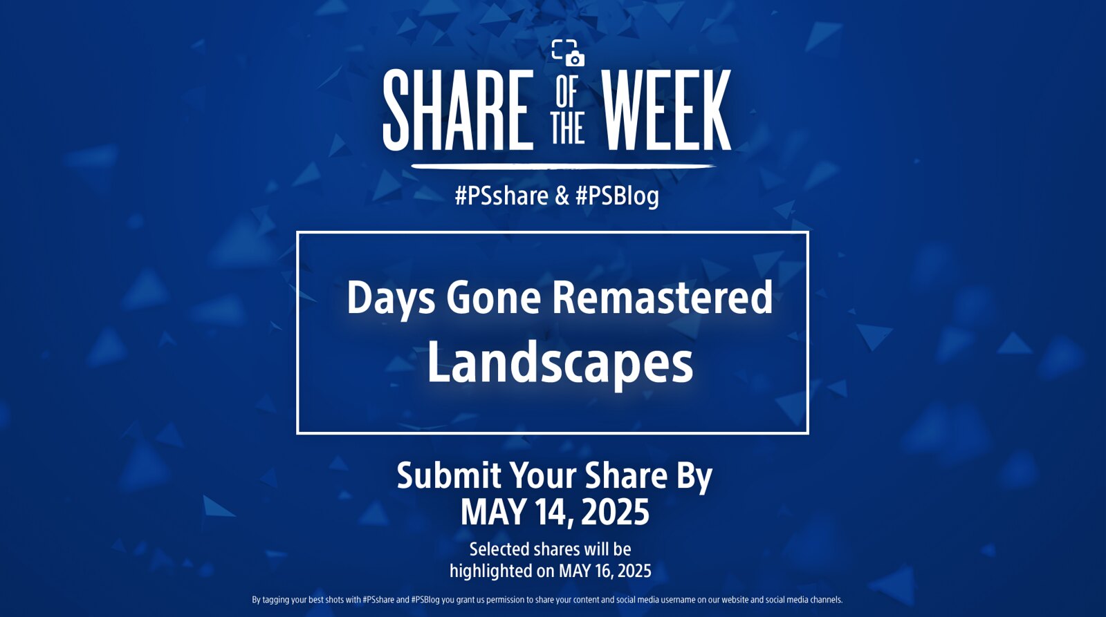 Next week, we’re taking in the sights of Days Gone Remastered. Share broken down and nature-filled landscapes using #PSshare #PSBlog for a chance to be featured.