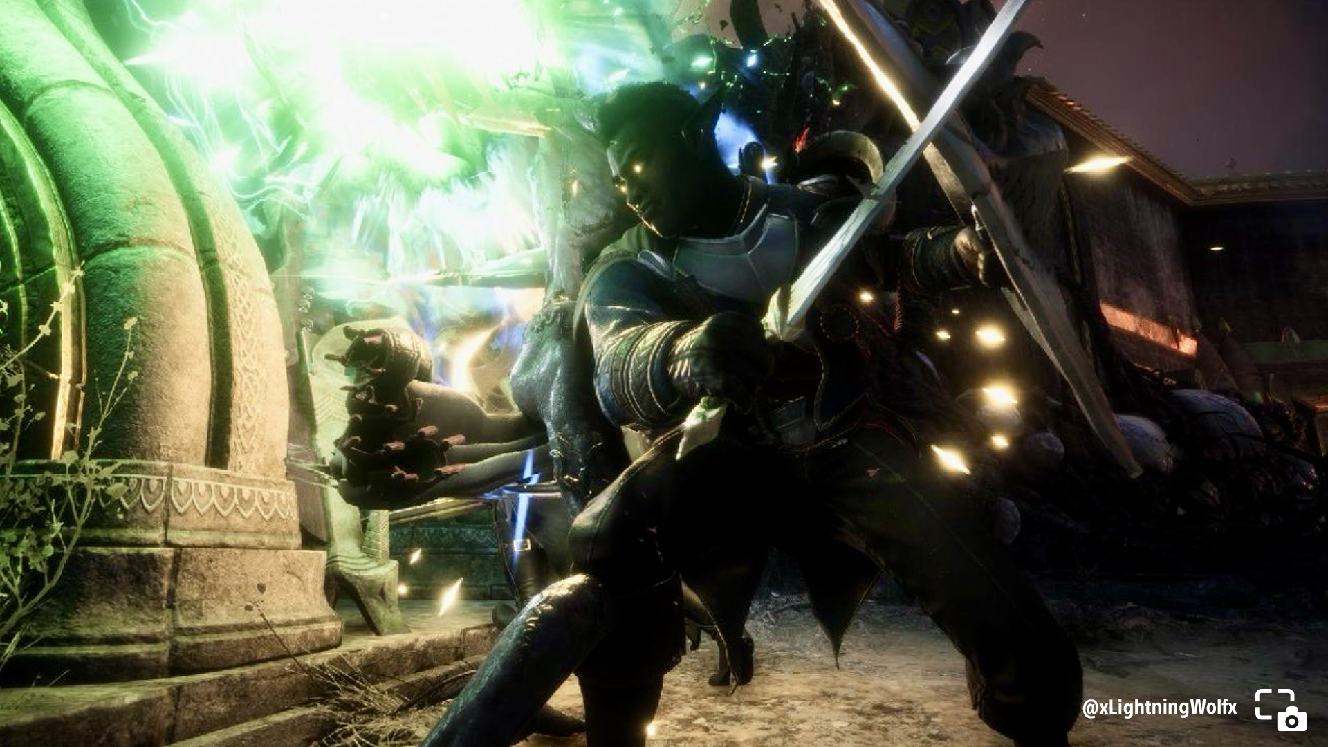 xLightningWolfx shares Grey Warden elf Davrin in the heat of battle.