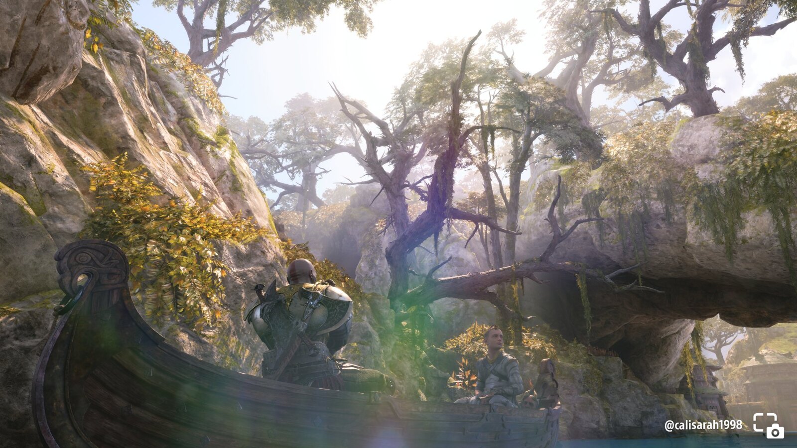 calisarah1998 shares Kratos, Atreus and Mimir traveling through Svartalfheim in a canoe