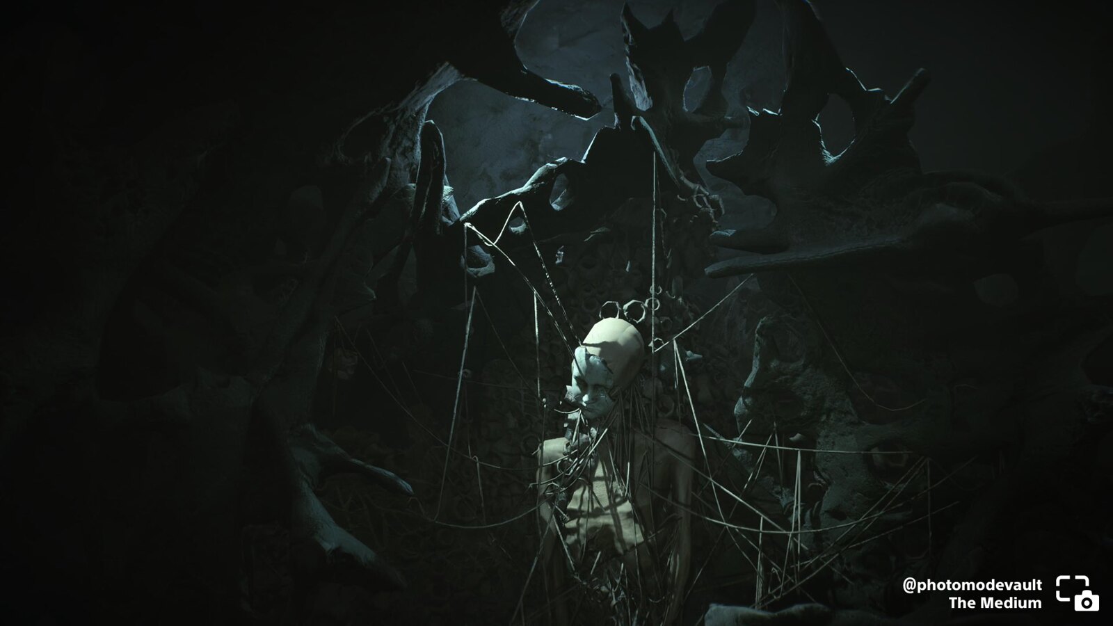 photomodevault shares a masked figure hanging tangled in cords in The Medium.