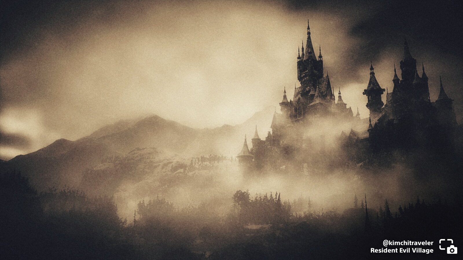 kimchitraveler shares Castle Dimitrescu looming in the foggy distance of Resident Evil Village