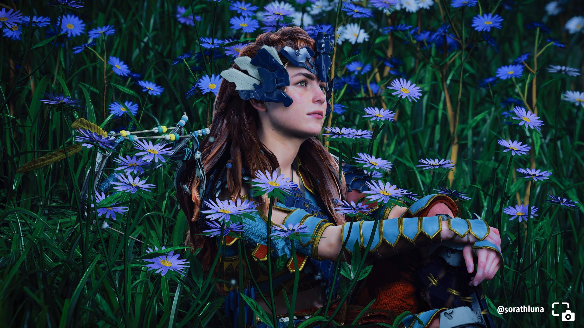 sorathluna shares Aloy sitting in a field of blue flowers.