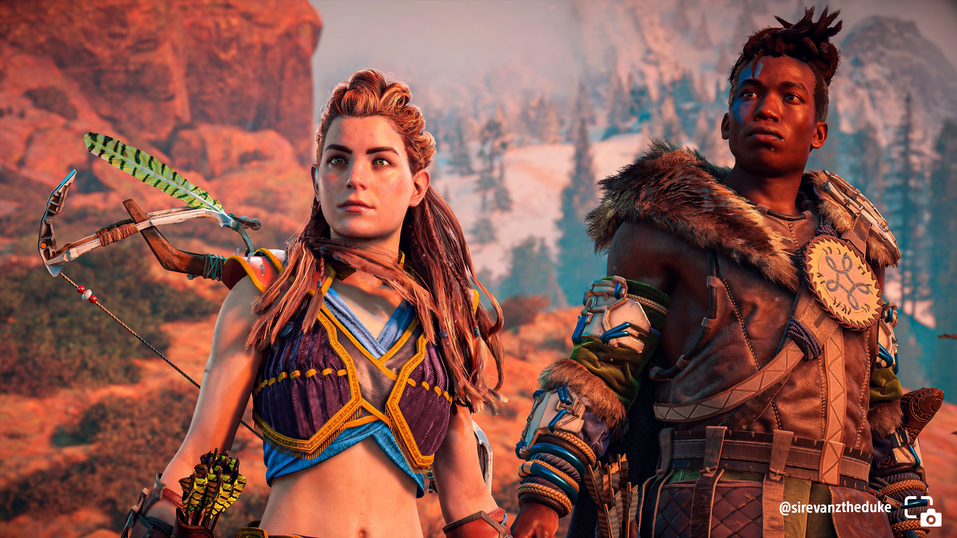 sirevanztheduke shares Aloy and Varl gazing out at the land before them.