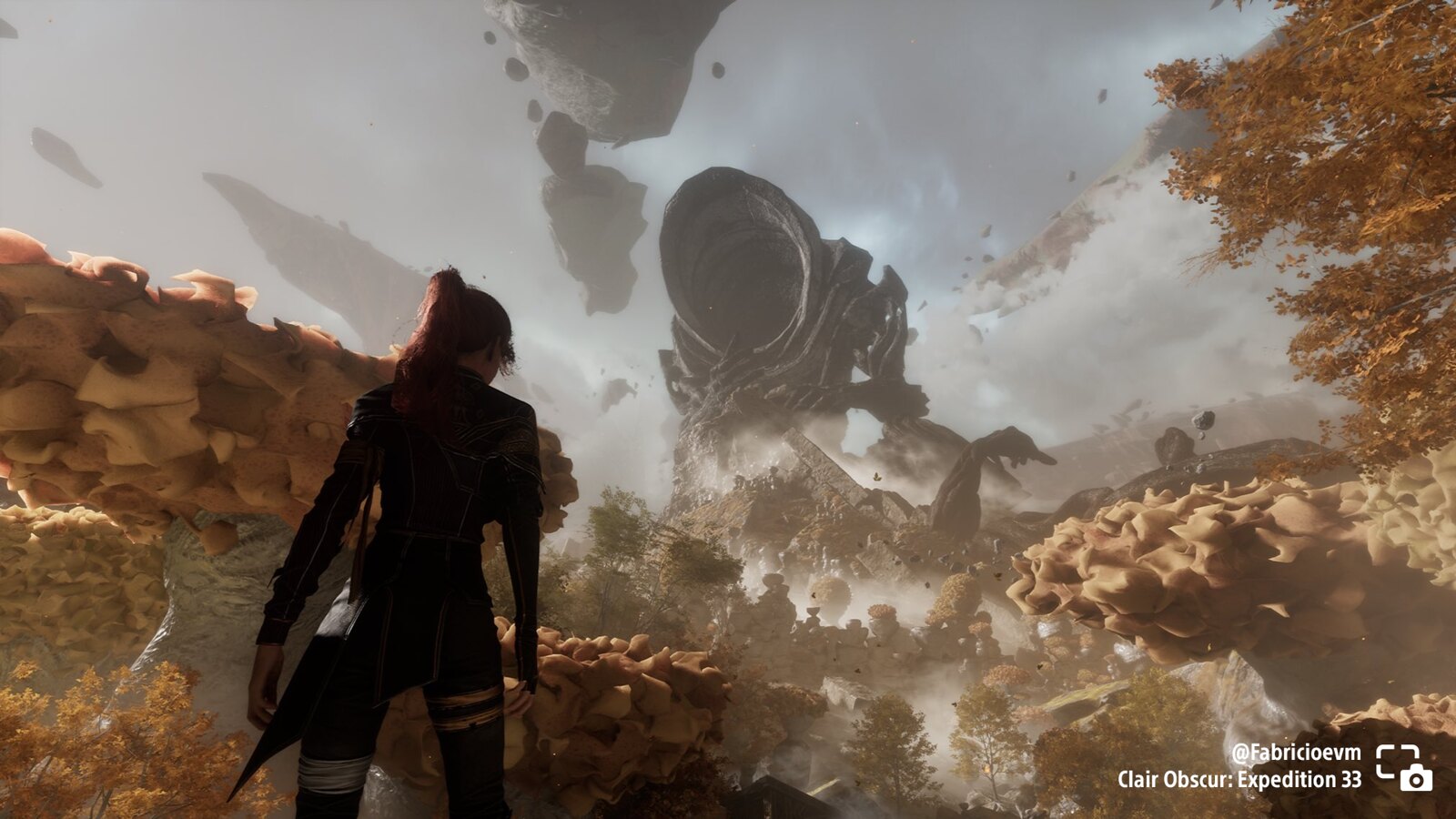Fabricioevm shares the massive landscape of Clair Obscur: Expedition 33 with a mountain-sized Nevron in the distance