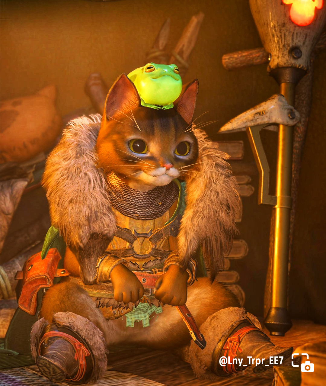 Lny_Trpr_EE7 shares a Palico chilling with a frog on its head