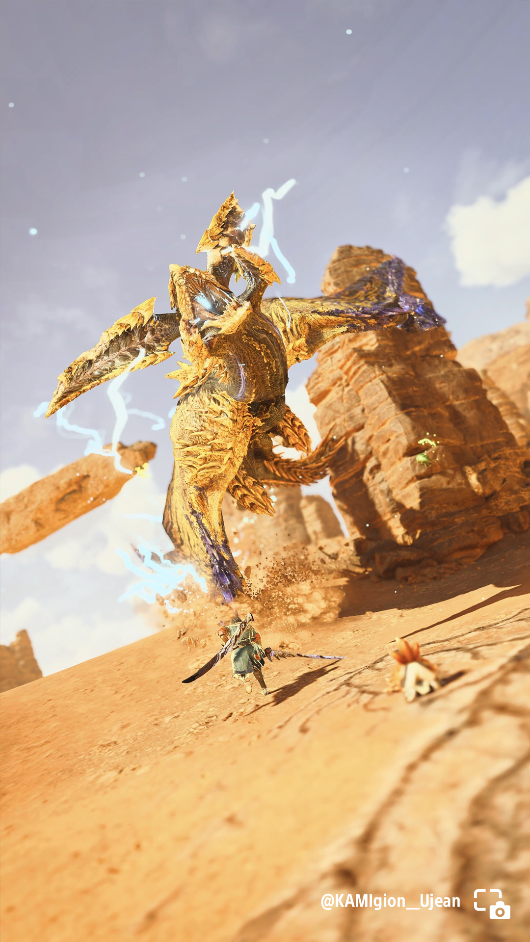 KAMIgion__Ujean shares an action-filled moment fighting a monster in the desert