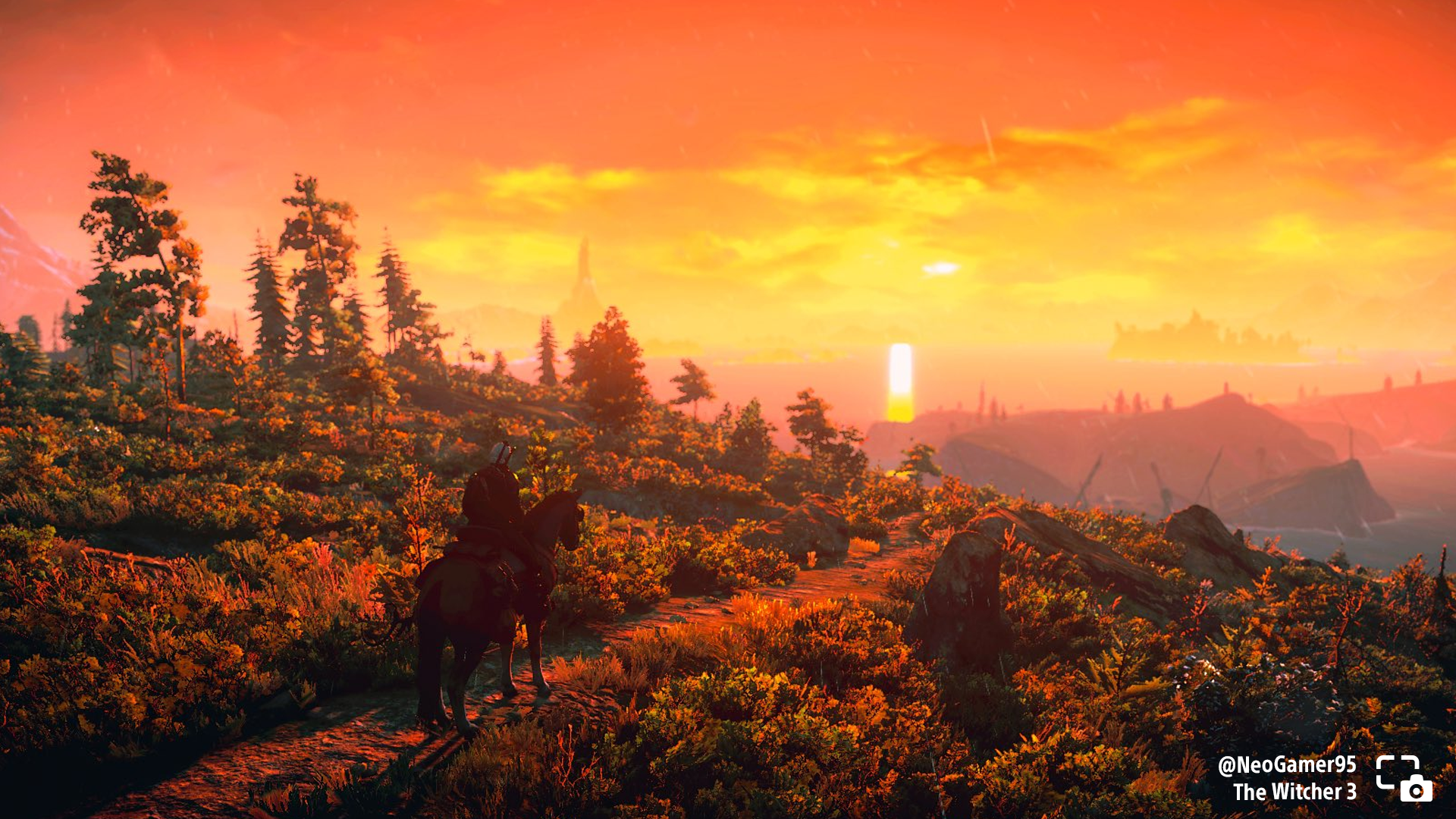 NeoGamer95 shares Geralt riding into a sunset in The Witcher 3.