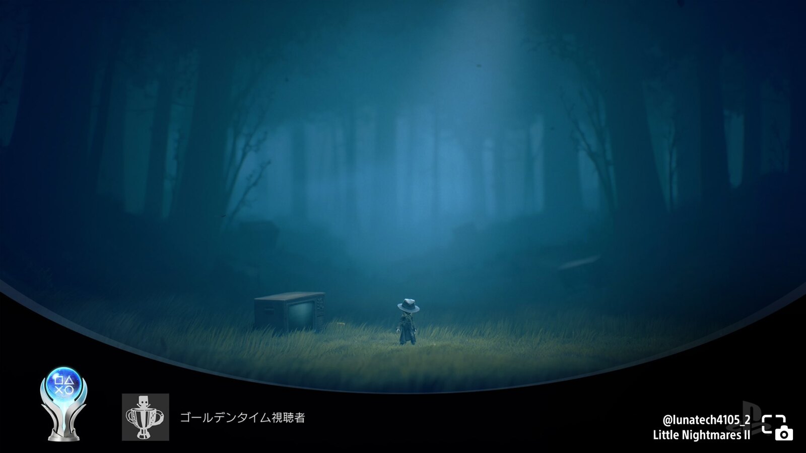 lunatech4105_2 shares Mono in a trench and fedora next to a TV screen in the woods of Little Nightmares 2.