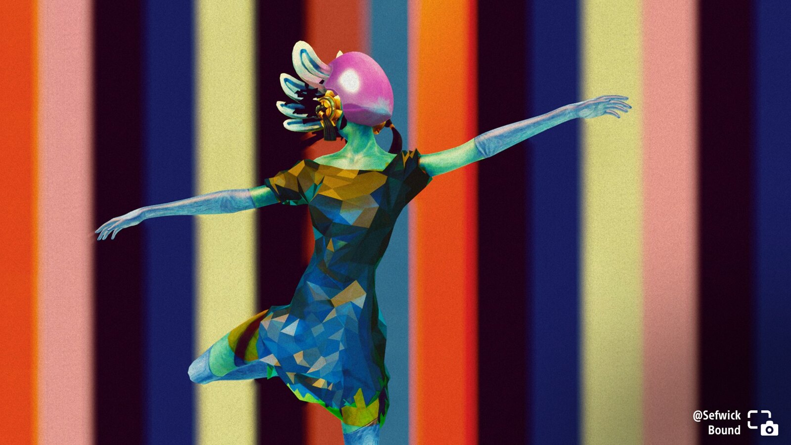 Sefwick shares the dancer in Bound posing against a muted color-striped background.
