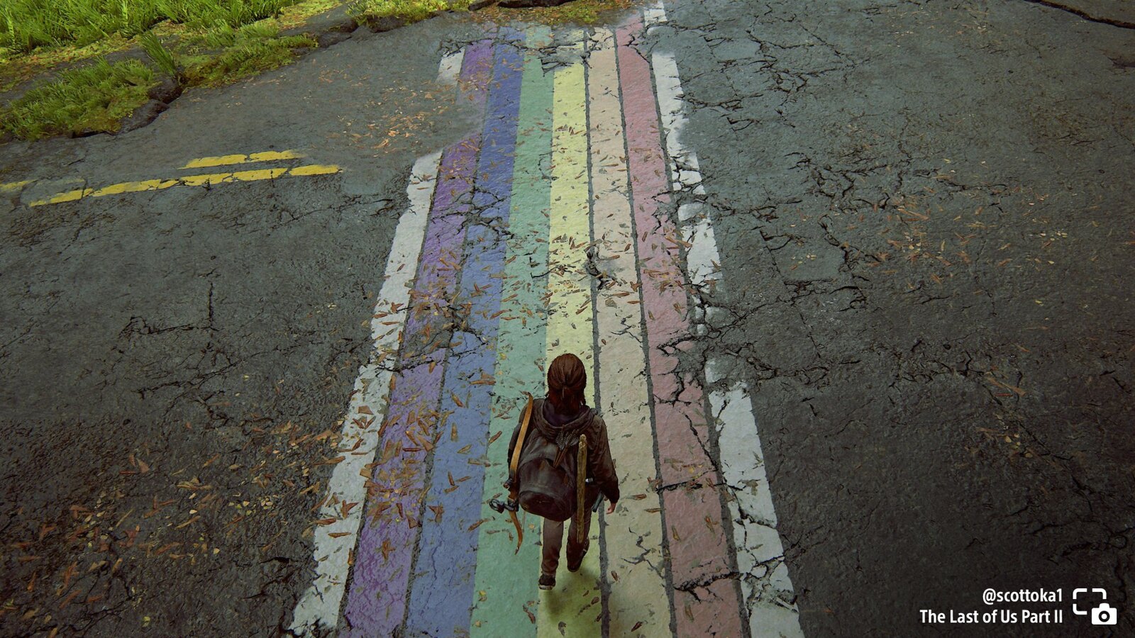 scottoka1 shares Ellie walking down a rainbow paved street in The Last of Us Part II.