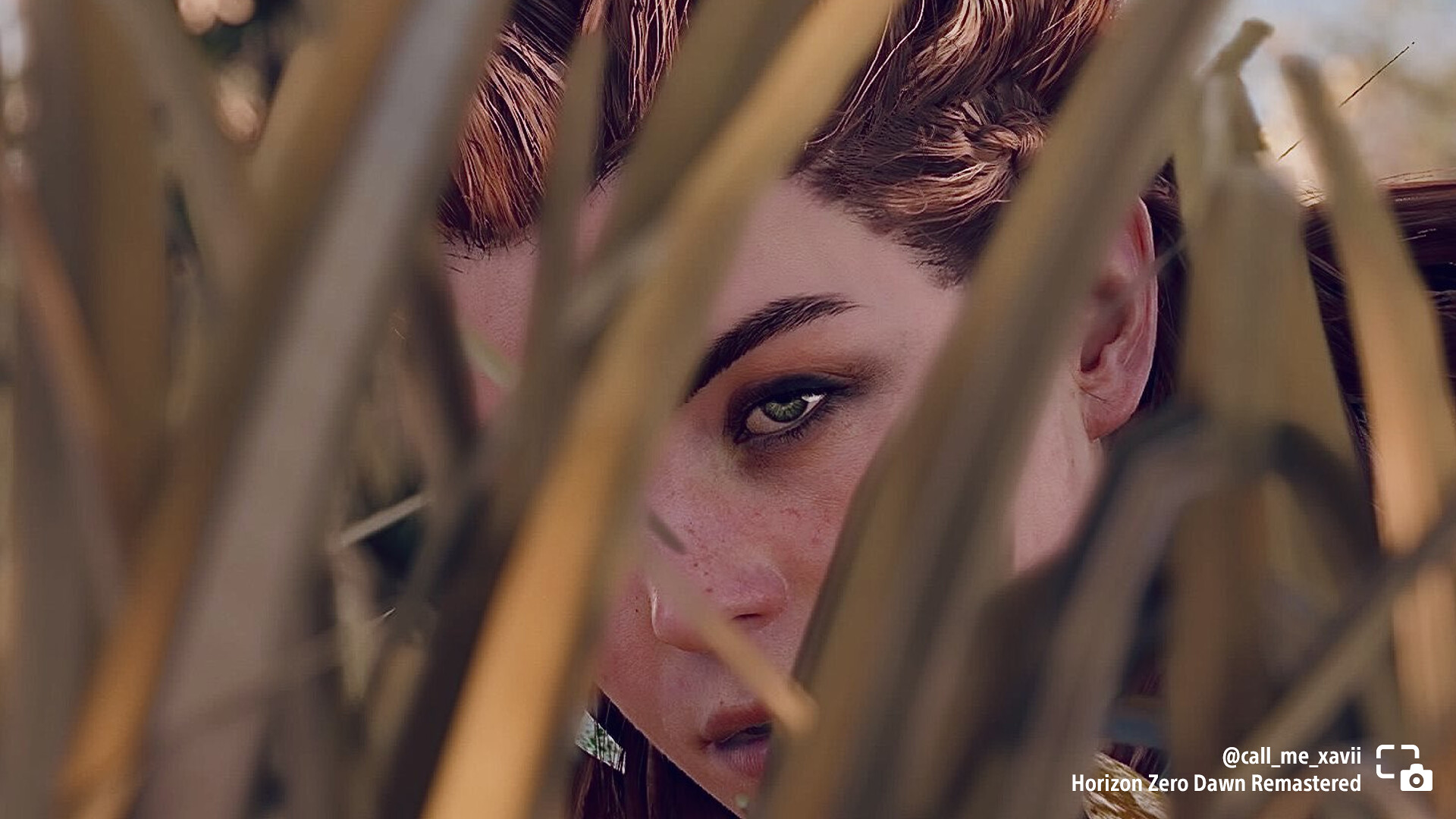 call_me_xavii shares Aloy peeking through tall grass in Horizon Zero Dawn Remastered.