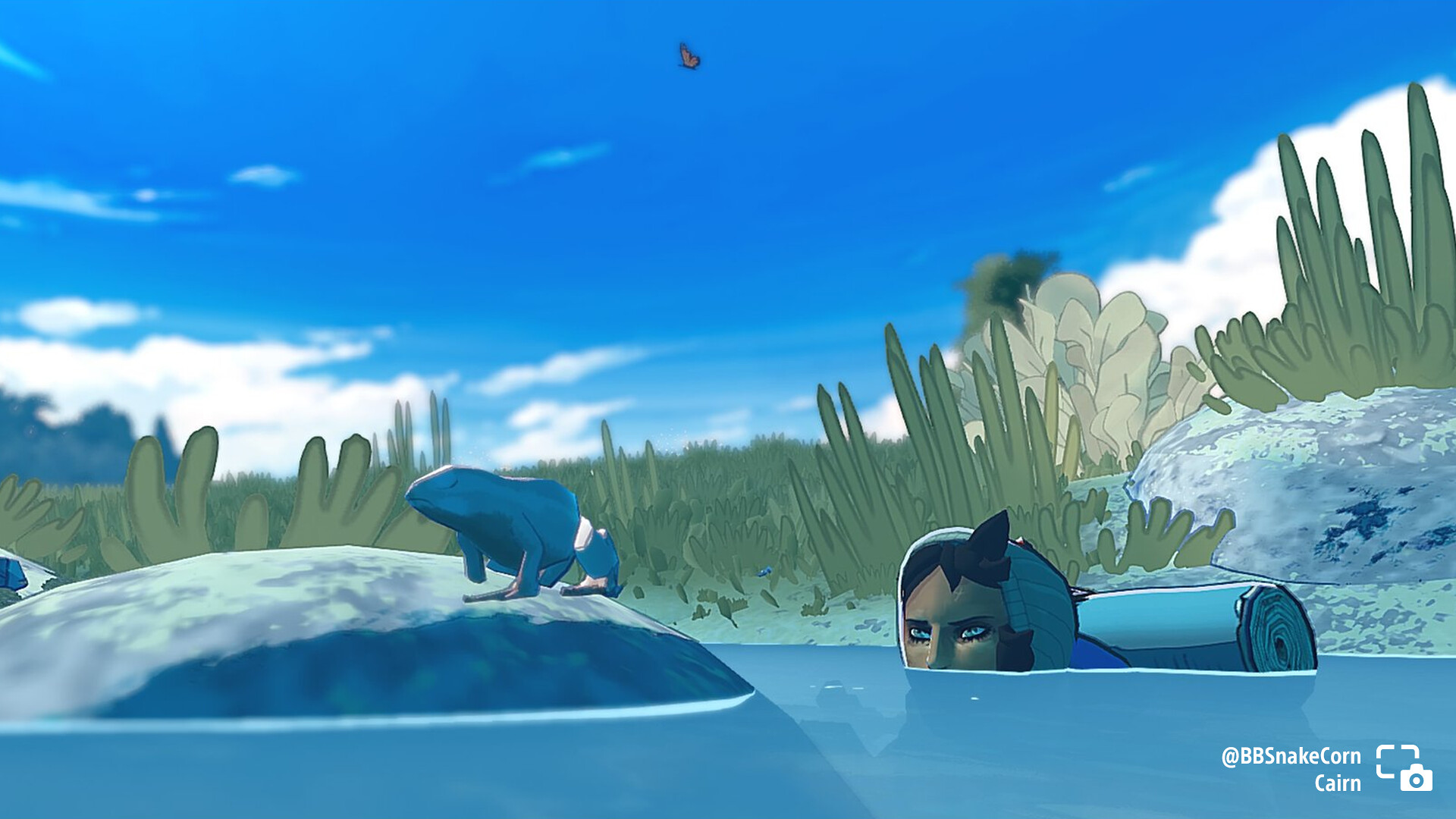 BBSnakeCorn shares the Cairn protagonist sneakily swimming up to a frog.