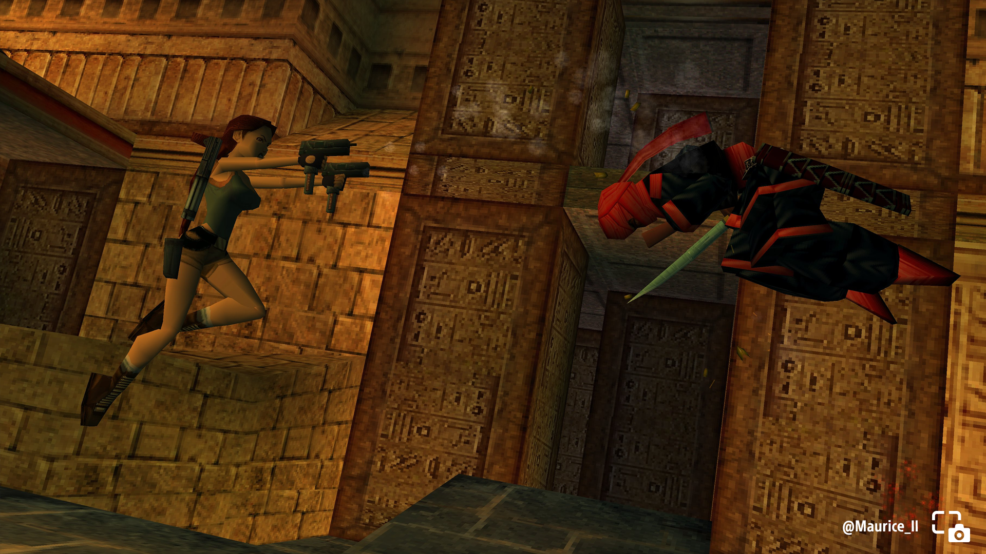 Maurice_II shares Lara leaping towards an enemy with guns drawn