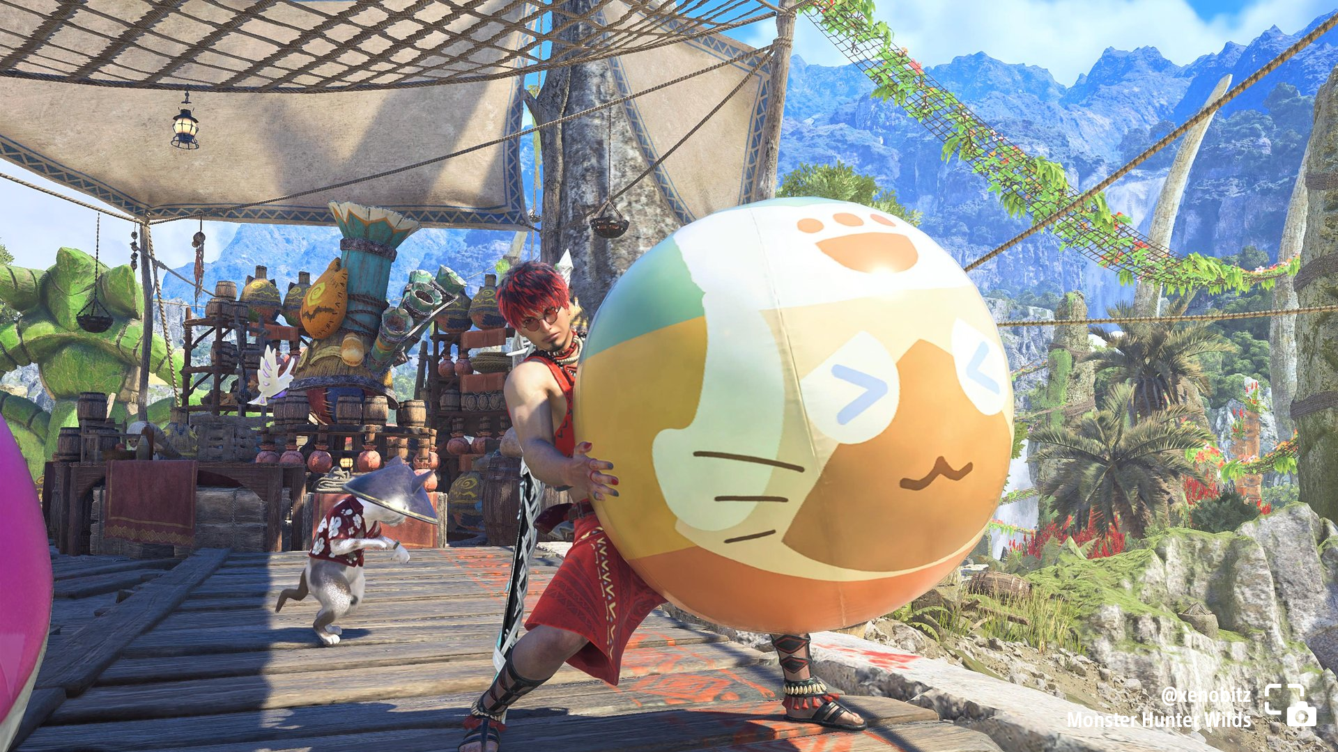 xenobitz shares a hunter with a giant beach ball in Monster Hunter Wilds.