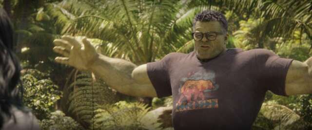 Yes, Bruce Banner is Jen’s cousin and the two seem close. This is also an interesting look at the character post-Avengers: Endgame. He’s back in human form and his arm is slowly healing. What’s more, he’s created a device to help him stay in human form.