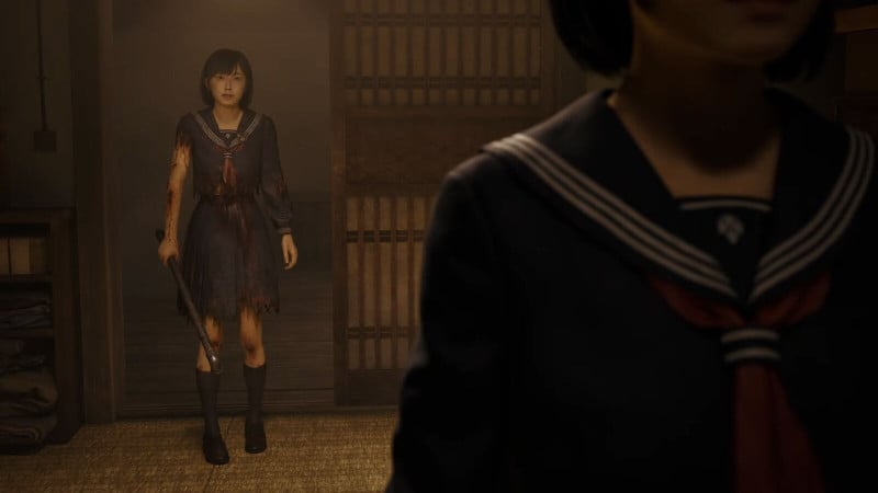 Exploring the village is a more harrowing prospect compared to past games, thanks to its narrow alleys and pathways that often funnel players into danger; I appreciate how this prevents me from trivializing threats by casually circumventing them as was possible in older entries. While it’s still possible to evade and flee most encounters, fighting is often the way out. Hinako is brave, but she’s not a trained fighter, so her weighty and clumsy melee-focused combat not only suits her, but nailing light and heavy attacks has a satisfying impact. Breakable weapons add welcome intensity to battles; I like weighing whether it’s worth damaging a powerful bat or axe on a threat. Managing stamina to swing or dodge attacks complements this tension, spicing up the otherwise simple confrontations. I also like how the game forces players to study foes to find openings to nail timed counterattacks that briefly stun targets.