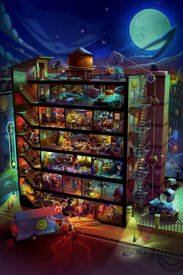 The official 20th anniversary of Sly Cooper is September 23, although the celebrations started earlier this week with the release of The Sly Collection, Sly Cooper: Thieves in Time, and Bentley’s Hackpack on PS Plus Premium. All of these games have also been represented in a brand new artwork created by original Sly Cooper art director Dev Madan. The large poster, which can be seen above but really needs a full-size image to be done justice, is “jam-packed with references and easter eggs”.