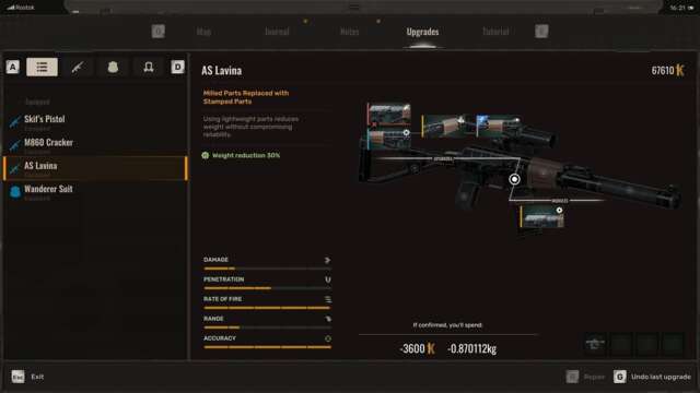 Lastly, it bears mentioning that you can also lower the weight of items that you have equipped. Simply chat with technician NPCs in bases and check the upgrades panel. If you click on certain parts of your weapons or armors, you might see options like “Lightweight Materials” or “Milled Parts Replaced with Stamped Parts.” These upgrades cost coupons, though they decrease the overall weight of the weapon or armor by a small amount.