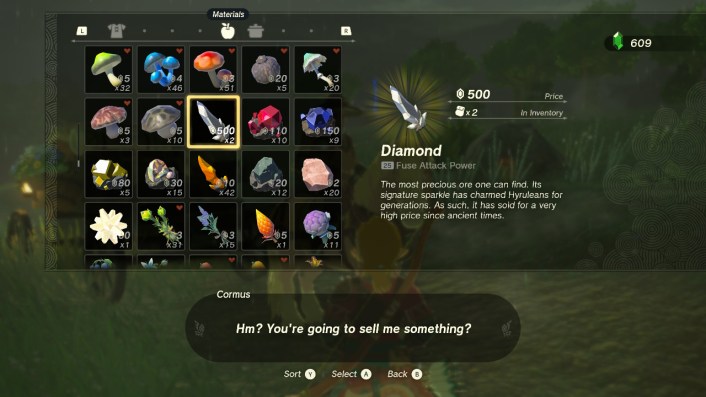 Link must finish the Eldin region’s main quests to unlock and sell to Ramella. For comparison, these are the gems that Link can sell to Ramella and the prices she will buy them for: