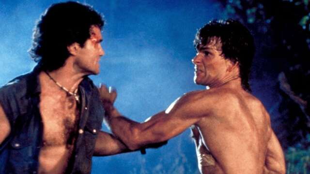 US Army captain Frank Dux (Jean-Claude Van Damme) was already determined to win the Kumite, an underground martial arts contest held in Hong Kong, to honor his adopted father. But when Frank’s friend Jackson (Donald Gibb) is injured by the ruthless Chong Li, his mission takes on even greater importance. Looking for an advantage, Dux is blinded with powder WWE-style, but Frank still manages to defeat Chong Li with an endless barrage of roundhouse kicks accompanied by countless guttural yells.