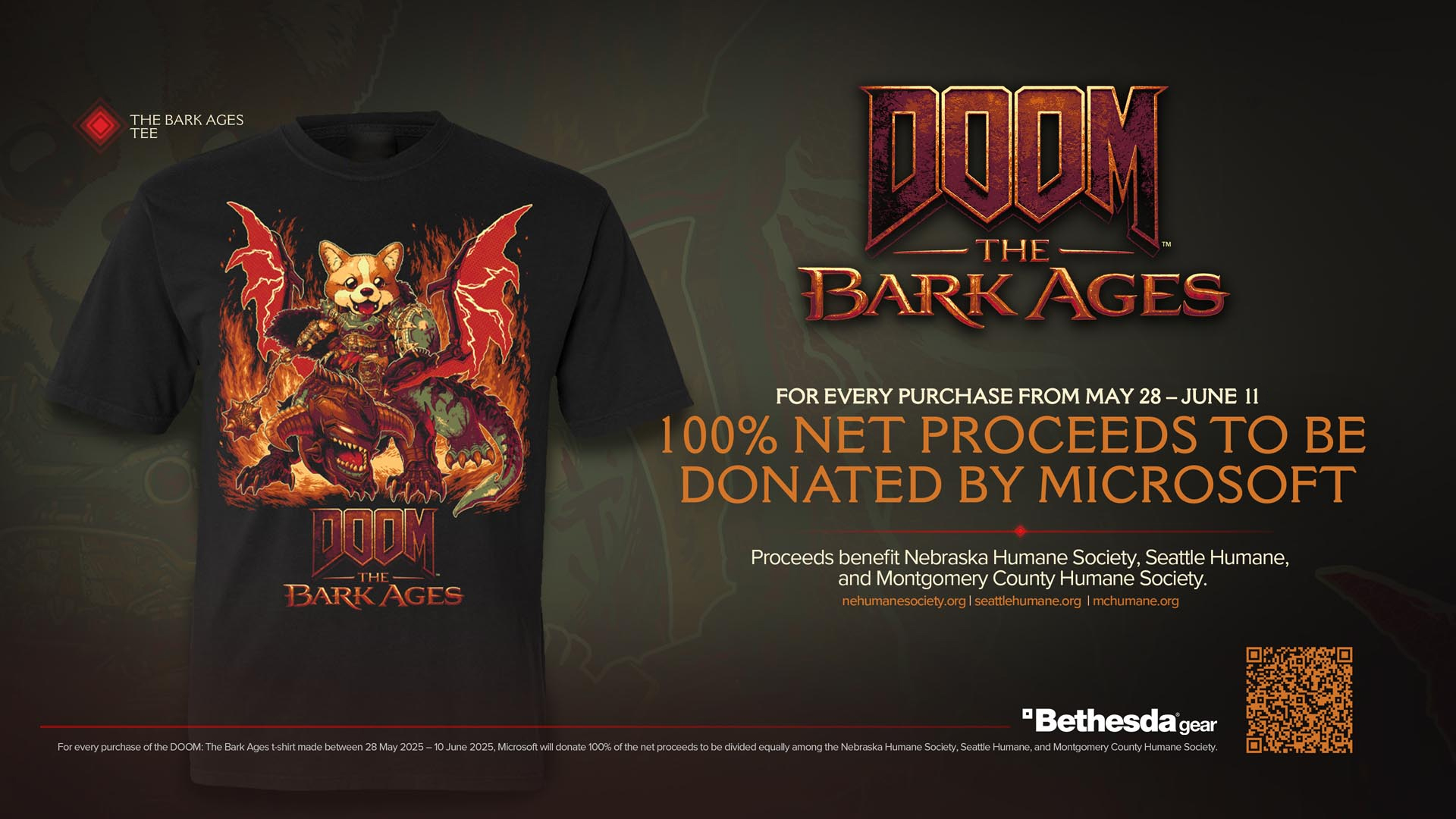 To celebrate the recent launch of DOOM: The Dark Ages, Xbox and Bethesda are teaming up with three animal shelters to support shelters across the country — and unleashing a brand-new wave of chaos-turned-compassion with an updated version of our fan-favorite The Bark Ages charity t-shirt.