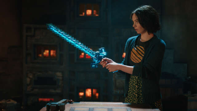 After Steve places a bunch of gravity-defying blocks in the air, we cut to Natalie (Emma Myers) crafting a diamond sword. In a blink-and-you’ll-miss-it moment, you can spot her using the correct recipe on a Minecraft Crafting Table: two diamonds and one stick. Furnaces, used for smelting ingots out of ore, burn behind her.