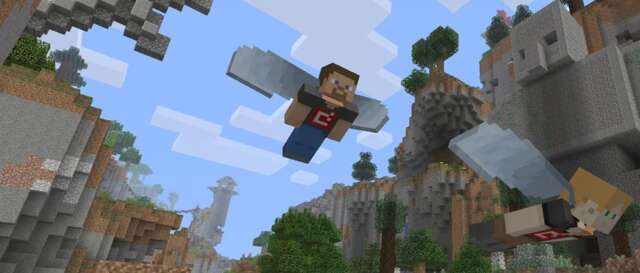 Experienced Minecraft fans–especially those who don’t wear Elytra all the time (more on that later)–know to keep a bucket of water in their inventory. Water breaks falls in both real life and Minecraft, but in Minecraft water also stays where you put it. Just dump a bucket of water directly below you, and you can fall from any height–just like Steve (Jack Black). When they land, there’s also a set of Elytra wings on the ground.
