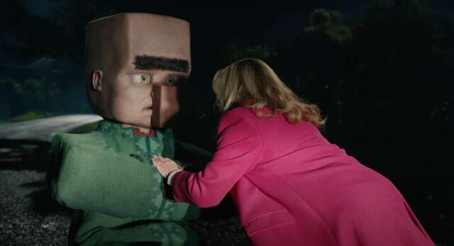 The villager at the end of the trailer is a nitwit. Most villagers, if placed near a job block, will take on the profession matching that job block. But some villagers just aren’t fit to work–the nitwits. They wake up late and go to bed late, meaning that if any villager was going to get run over by Jennifer Coolidge, it’d be a nitwit. You can tell by his green clothes and the fact that he was in the middle of the street in the first place.