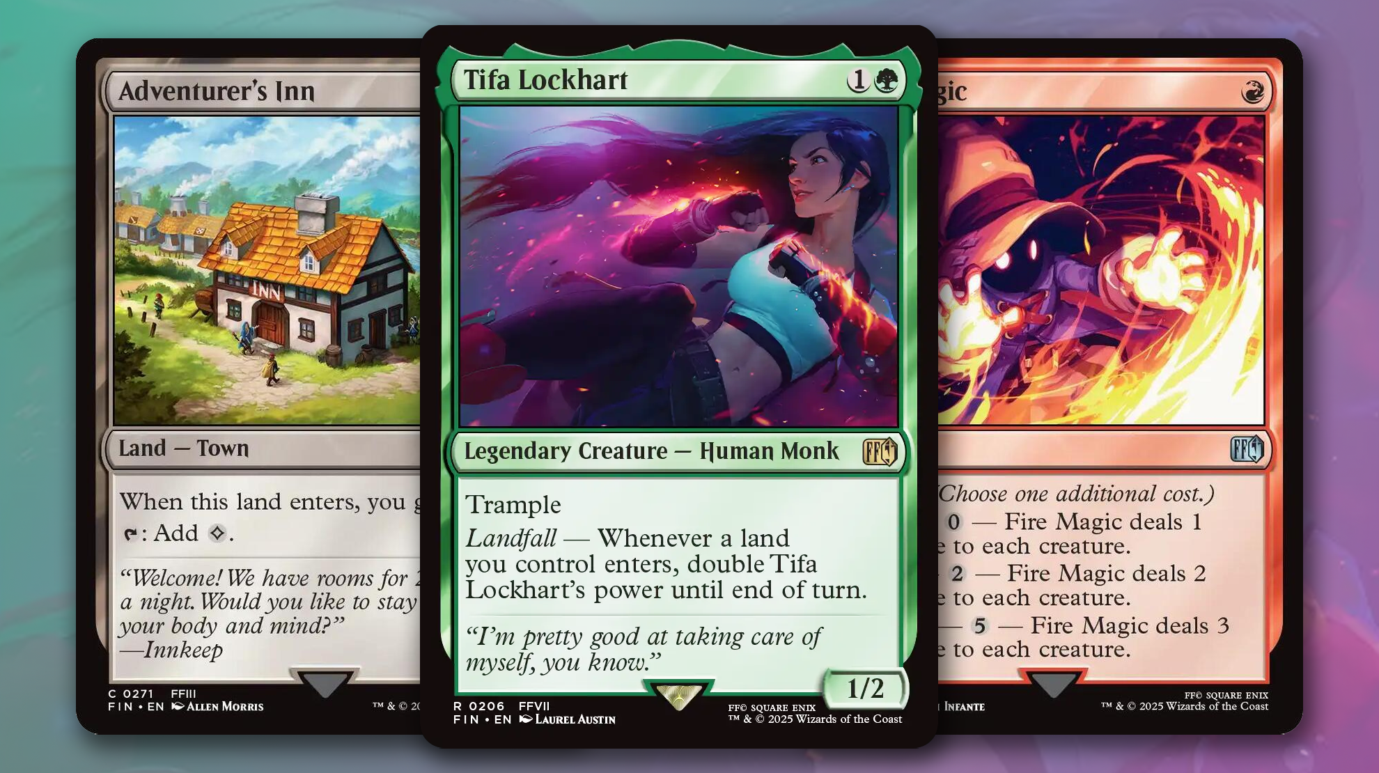 Not to be confused with the variant in the Final Fantasy 7 Commander Deck, this Tifa has a Landfall trigger that doubles her power alongside her existing Trample keyword.