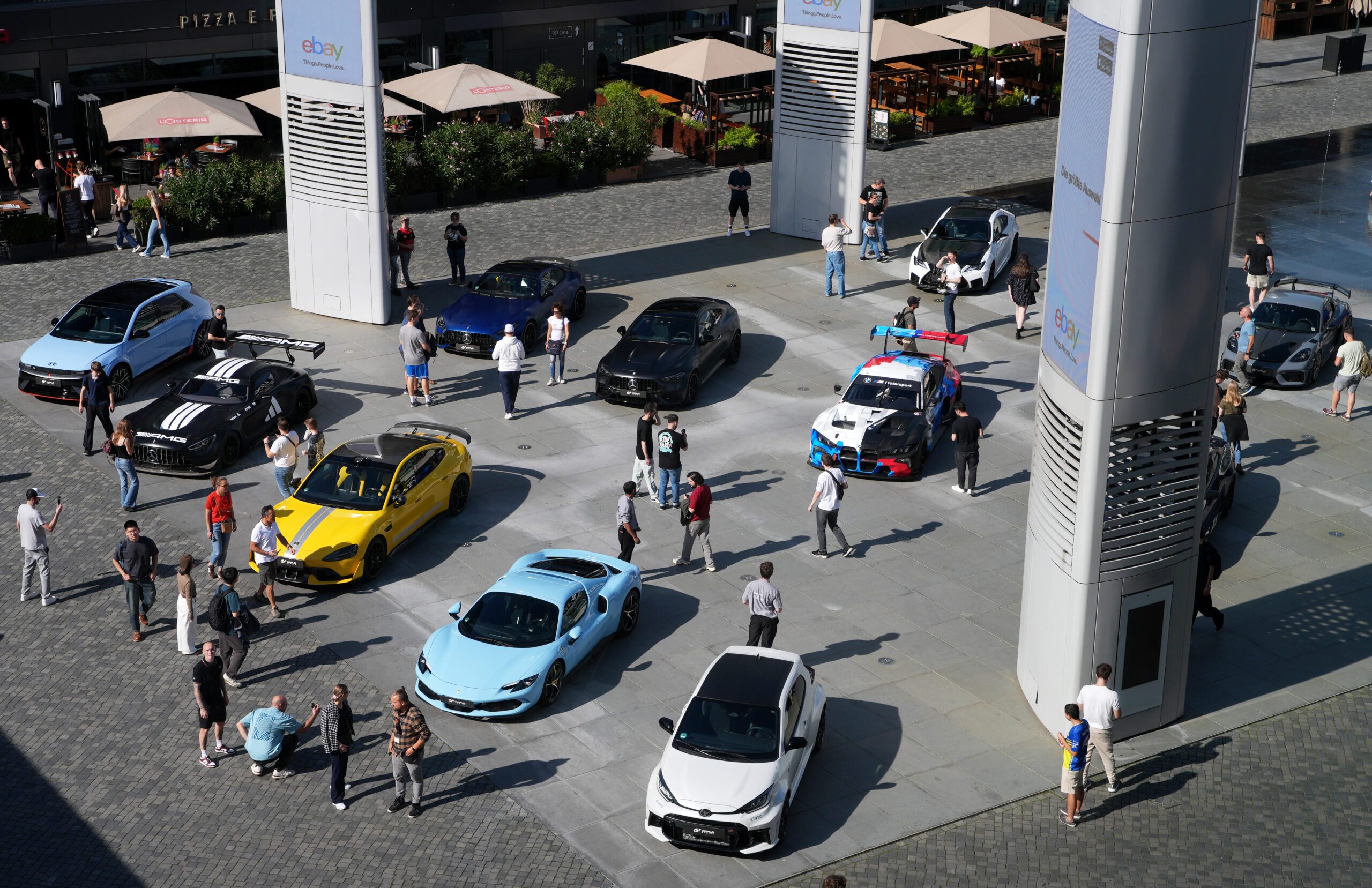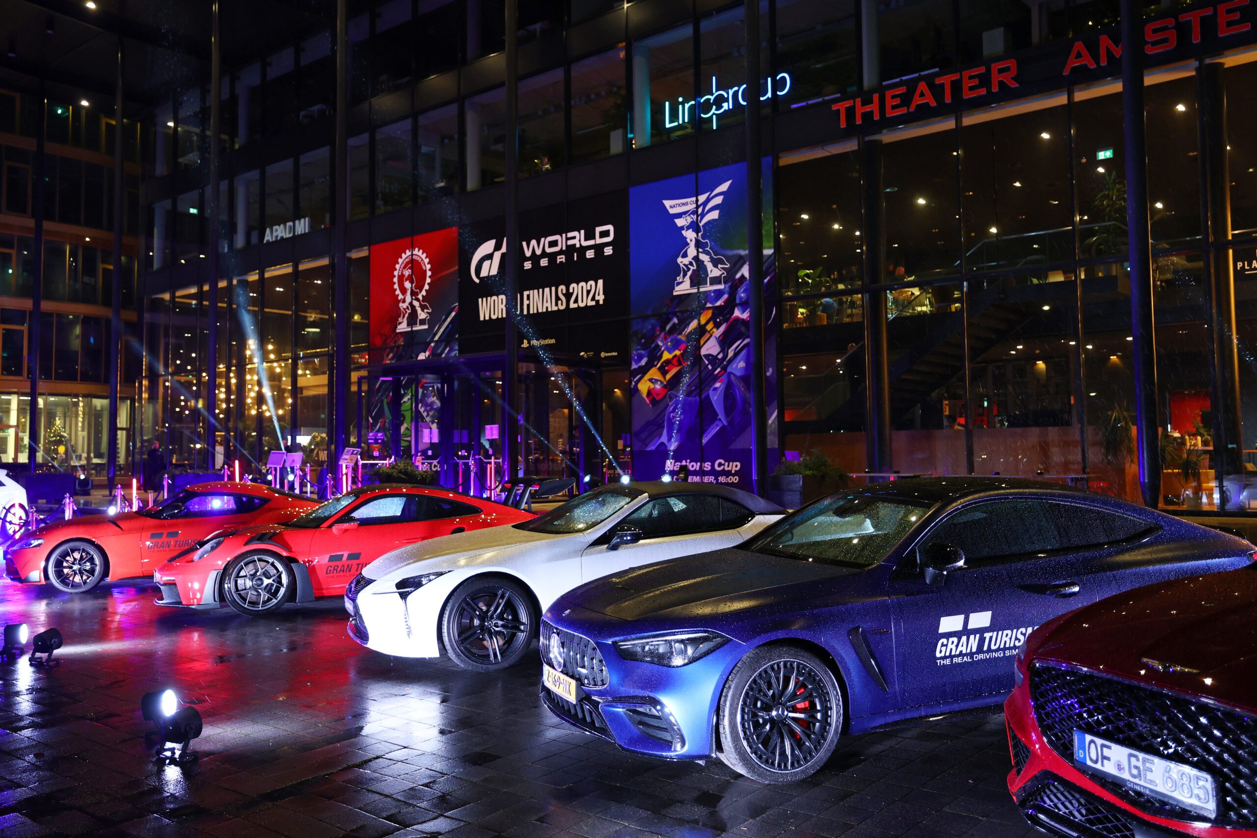 This is Gran Turismo brought to life, celebrating virtual racing and car culture under the LA skyline.