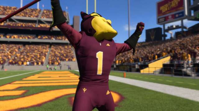 Bird mascots are a dime a dozen in sports, so one really needs to stand out to be considered among the elite. Utah’s Swoop has certainly done that since it was introduced in the 1990s. The red hawk does an outstanding job as Utah’s mascot, driving onto the field on a motorcycle to lead the players out and constantly flapping its wings all game long. The motorcycle entrance wasn’t included in College Football 25, but it’s now fully a part of CFB 26.