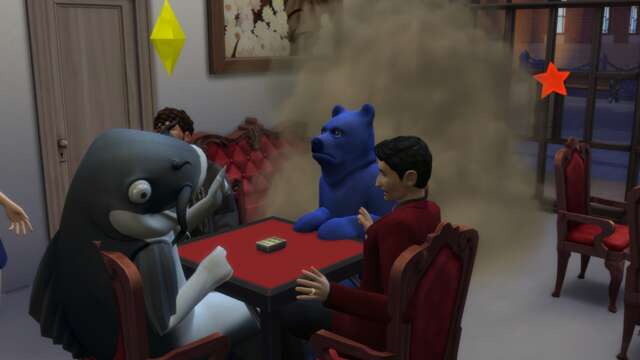 Considering how many options you have when coming up with your business idea, it can be easy to forget to include options that actually directly generate money. My first attempt at a business was a saloon where people could dress up as bears, play cards and get in random fist fights (as seen above). Since The Sims is not a gambling simulator (its age rating doesn’t allow that), the house makes nothing off those card games, and since my bartender didn’t know how to make many drinks, the business was earning very little. But there’s a very easy fix for this.