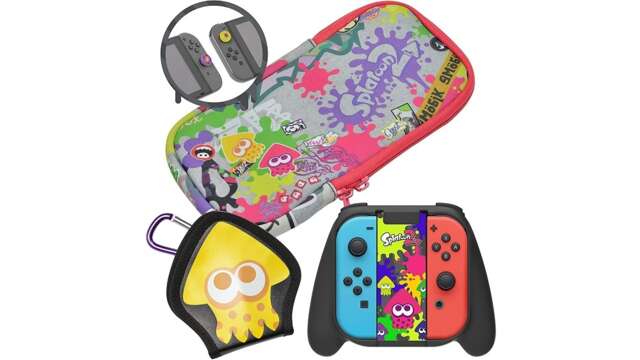 If you don’t mind the old Splatoon 2 designs, there’s a lot to love about this affordable bundle. For just $16, you’re getting a soft pouch for your console, a squid-themed game card case, the squid trigger grip for your Joy-Con, and two analog caps. This is arguably one of the best ways to accessorize your Switch with Splatoon gear without breaking your bank.