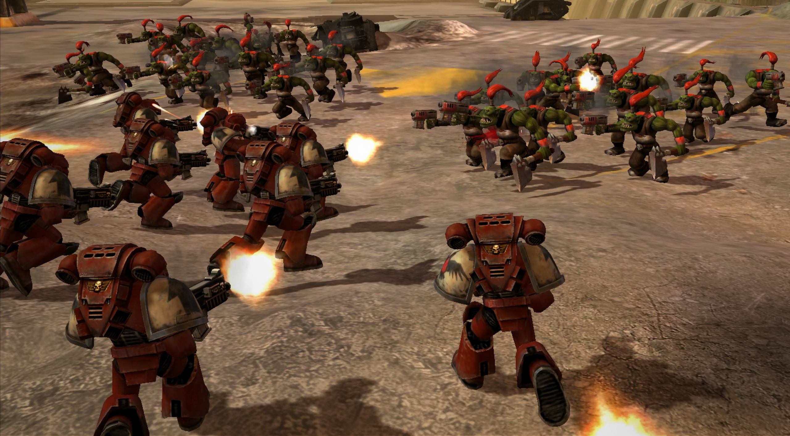 And then we were also aware that there were a bunch of decisions made at the time to accommodate performance constraints that didn’t exist anymore. So the camera’s really close, so you can’t actually see very much of the map. We wanted to preserve the intimacy of the game, but we found that if we backed the camera out just a little bit, you got a little bit more breathing room, you could see your base all in one screen. In the original, if you’re playing Orks and you build a bunch of Boyz, your squads of 12 or 15 or whatever it is, you have three of them, they don’t all fit on-screen anymore. And so that was something we could address. And the other thing is we looked at what modders have been doing for the last 20 years and pulling the camera out was something they almost universally had done, so we definitely took a cue from them.