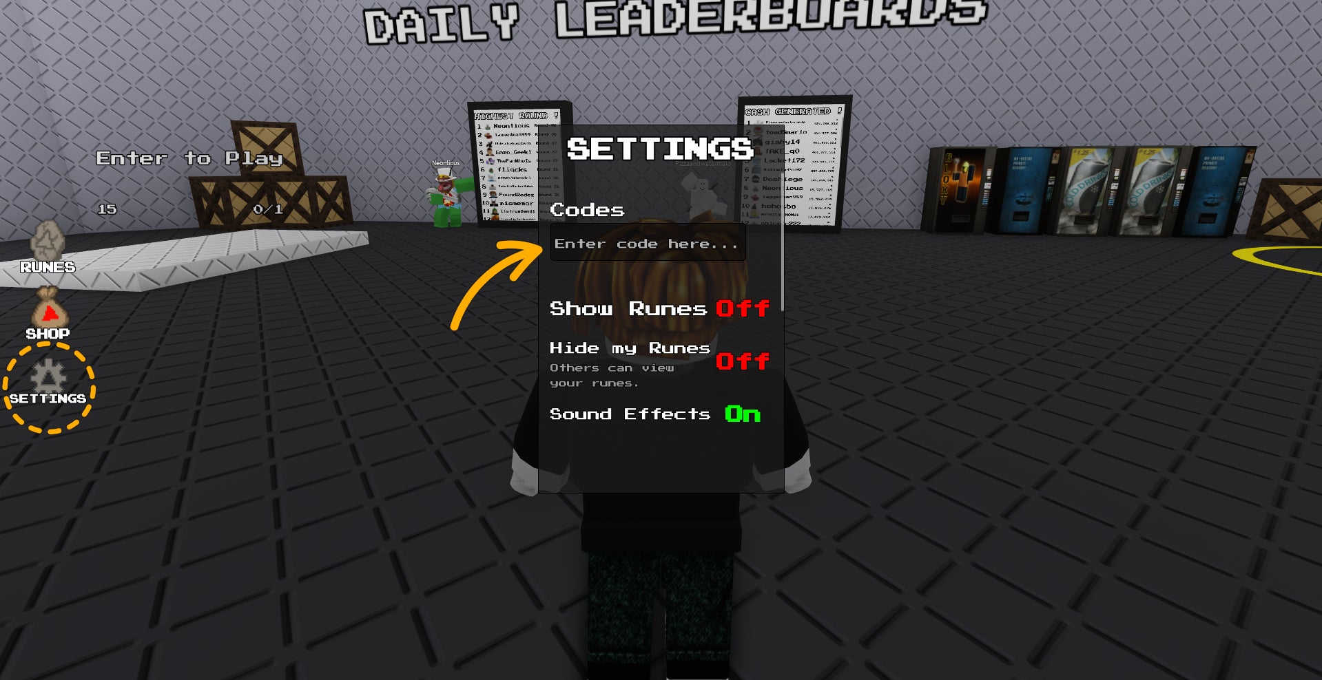 - In the centre of this pop-up, you’ll see the codes bar. Type your code into this bar and hit the ENTER key to redeem it.