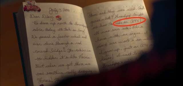 John reads his sister Krista’s diary in their old home. One of the entries says that their Granddad taught her how to ride an ATV. This is foreshadowing; later, during the qualifier for the Twisted Metal tournament, Krista (as Dollface) rides an ATV to protect John and Quiet from the other drivers.